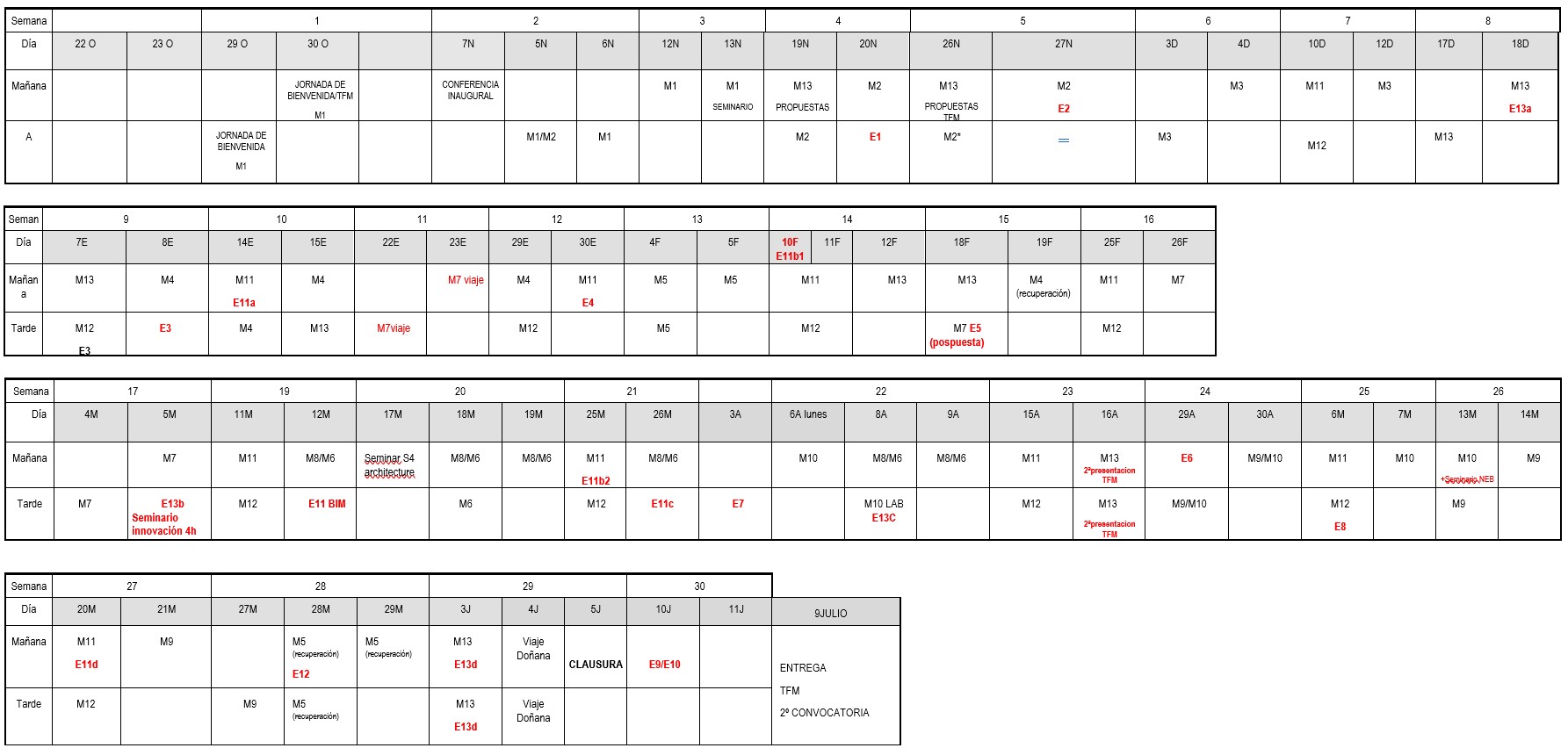 Calendario del curso (actualizado 13 de febrero de 2026)